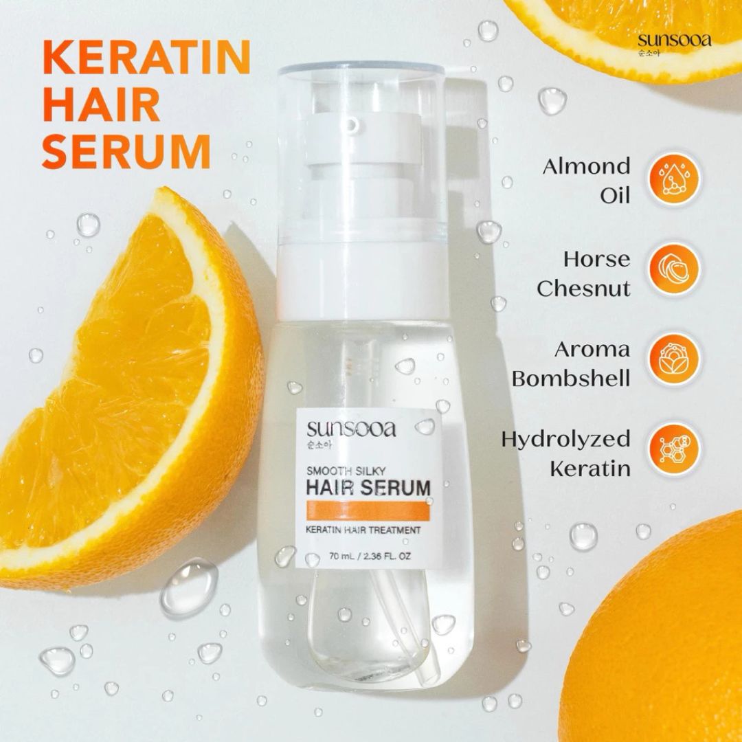 Sunsooa Hair Serum membantu melindungi rambut dari panas alat styling seperti catokan dan hair dryer. Selain itu, serum ini juga membantu melindungi rambut dari paparan debu, polusi, dan sinar matahari.